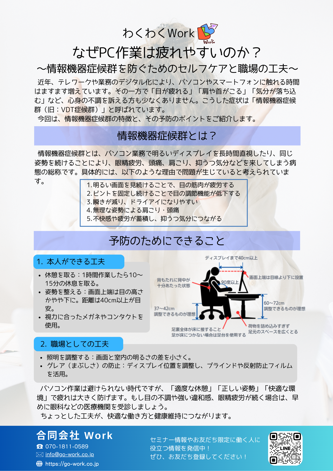 テレワークやデジタル業務が進む今、見落としがちな「情報機器症候群」。